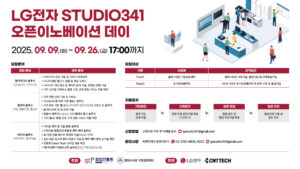 • LG전자·씨엔티테크, ‘STUDIO341’ 오픈이노베이션 데이 참가사 모집(~9월26일)