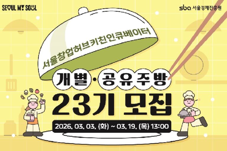 • 서울창업허브 공덕, 친인큐베이터 개별·공유주방 23기 참가팀 모집(~3월19일)