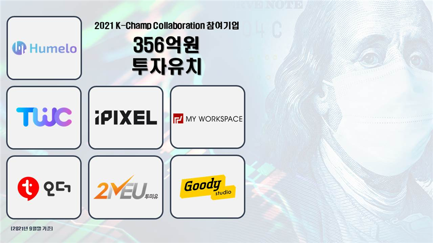 경기창조경제혁신센터는 센터의 대표 오픈이노베이션 프로그램인 K-Champ Collaboration(이하 ‘K-챔프 콜라보레이션’) 참여기업 23개사가 누적 356억 원의 투자를 유치했다고 밝혔다.